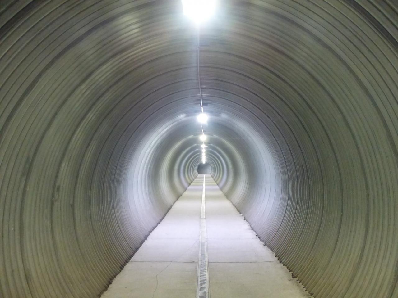 無事チェックインしたし晩飯も終えたので、でも夜中でも外は明るいから散策に行きました。ホテル?は津波を意識してるのか海からはやや離れてますので、この地下通路を通ってゆくようです。不思議な空間でした。