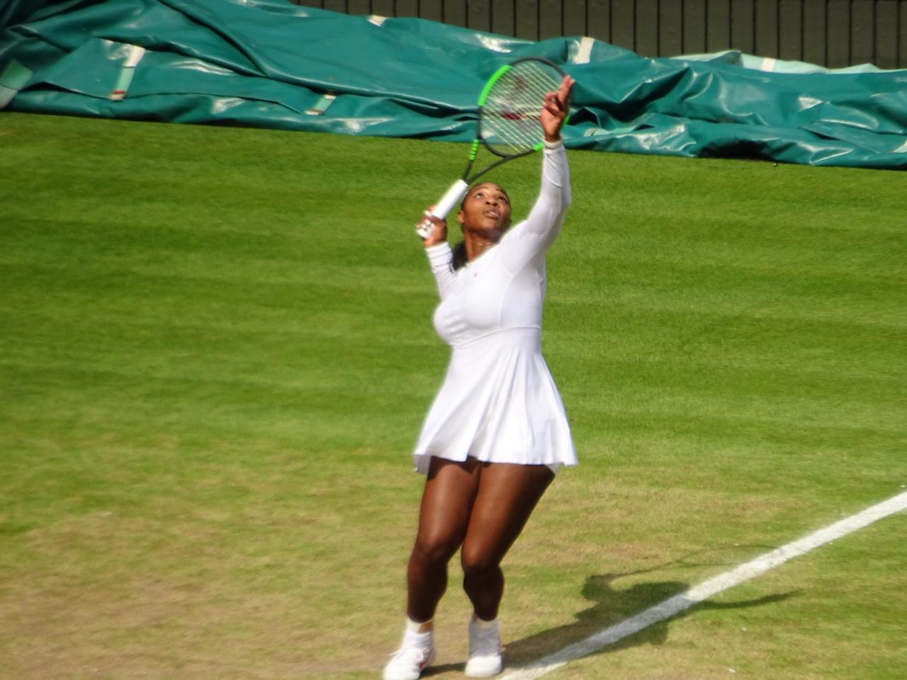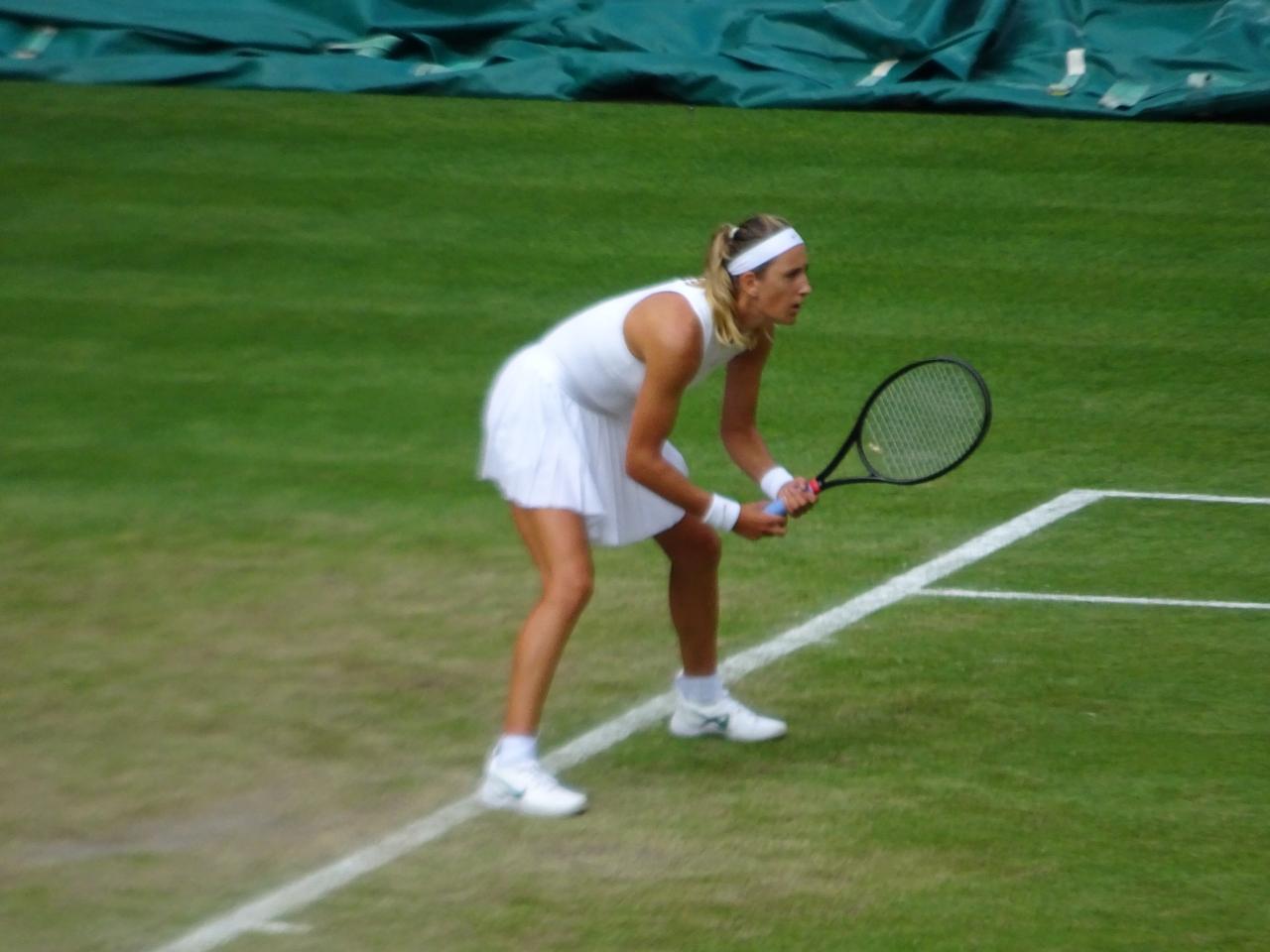 試合が始まった頃の写真ですが、3セット目には曇り空になり、風も吹いてきました。ウインブルドンで唯一「涼しい」と感じた時でした。