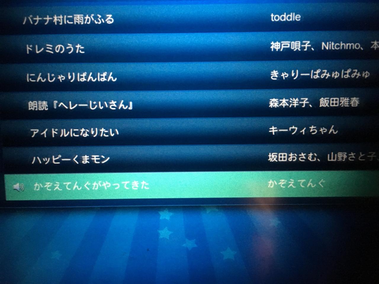 個人用モニターのこどもの曲のコーナーに『かぞえてんぐがやってきた』がありました。