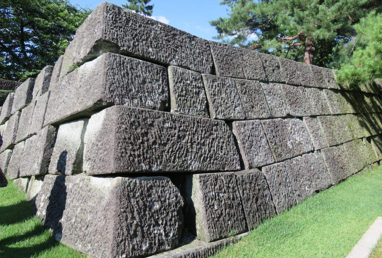かつて、『巽櫓(たつみやぐら)』があった東南方角の石垣のズームアップ光景です。寛文9年(1669年)の大火で失してからは、天守の復興は許されませんでしたが、代わりに前面の巽櫓と坤櫓(ひつじさるやぐら)が二重から三重になったとされます。巽櫓は、明治の初期まで残っていたとされ、現在は復興の構想も出されているようです。