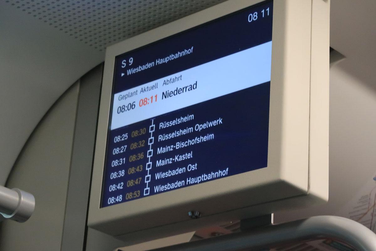 車内では、列車の遅れなどが表示されています。これを見ると、日本が遅れているのがわかります