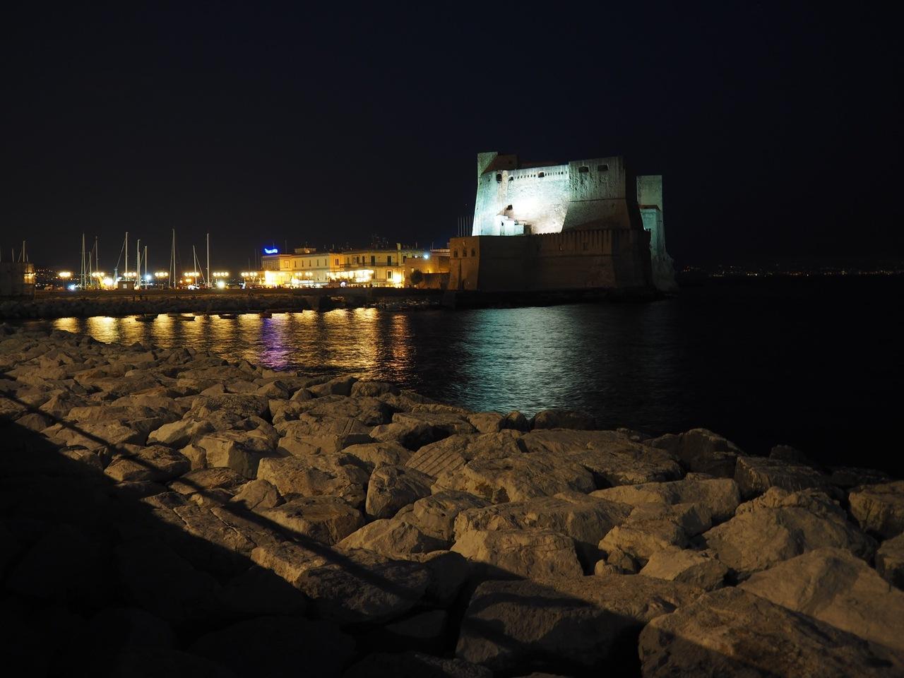 夕食を終えると日が落ちて卵城がライトアップされていました。ナポリは治安が心配という声がよく聞かれますが、この地区だけは日没後も子供たちの姿も見られるほどで、海外の普通の観光地の雰囲気でした。