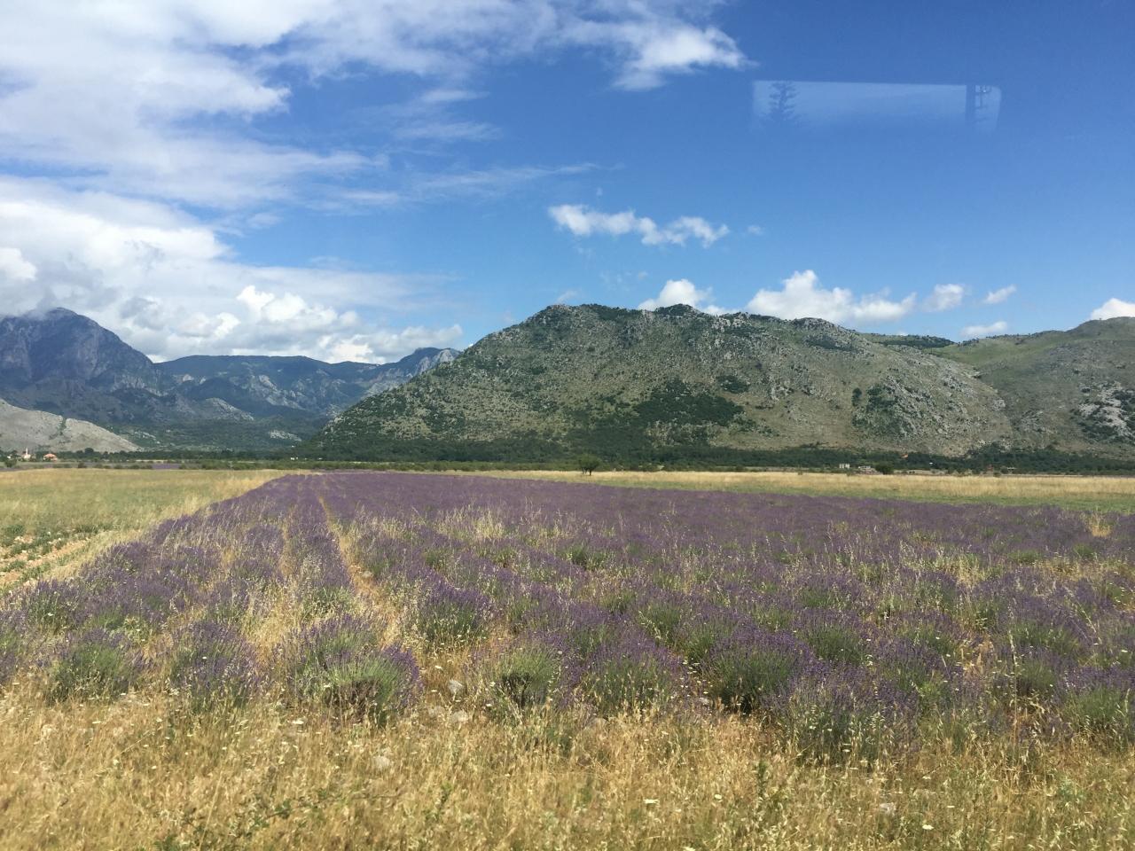下界に降り、シュコドラ湖の近くのラベンダー畑では、