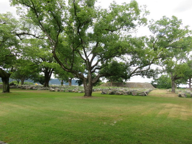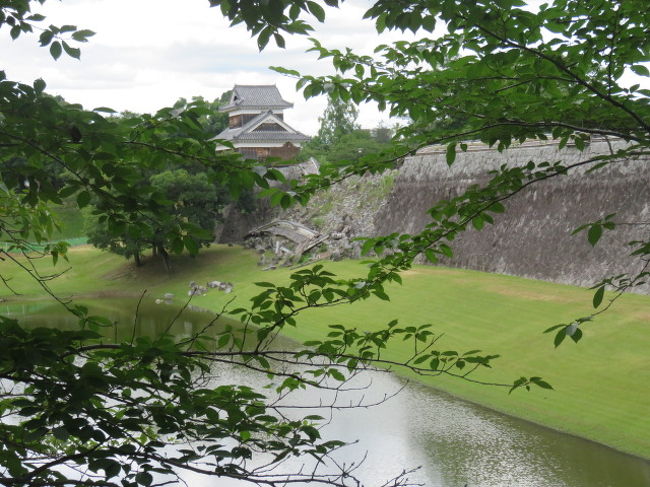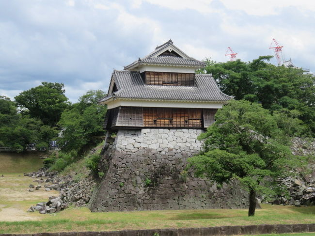 しかしながら、今回見舞われた地震で崩れはしないものの、ほんの少し石垣がふくらんだため、草が生え始めた個所が出ました。また、右方に付随していた続櫓は倒壊しました。 -