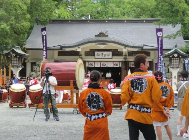 3時からはじまる神幸行列を待とうかと迷いましたが、暑さが増してきた上に、黒い雲の中では雷が発生しているようで、断念しました。