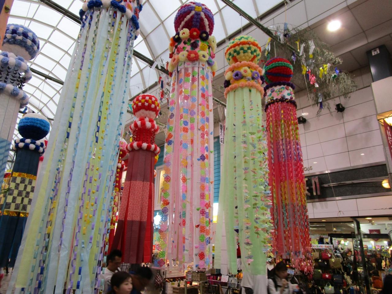 そこから南北に伸びる一番町通り七夕飾り(約900m)と、東西に伸びる中央通り七夕飾り(約800m)を見て回ります。