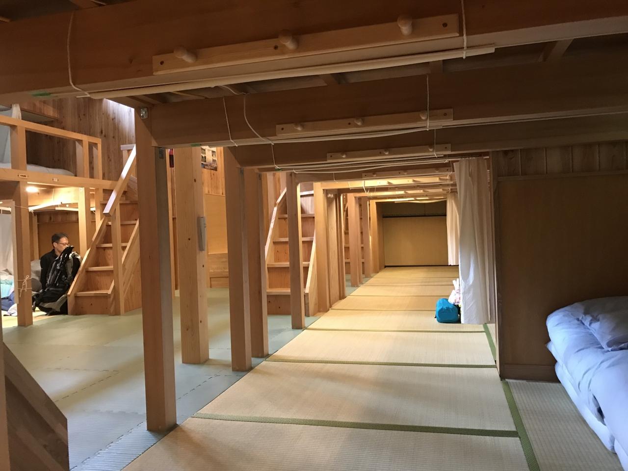 2階が客室になっており、上下2段のベッドに、各々布団が並んでいる
