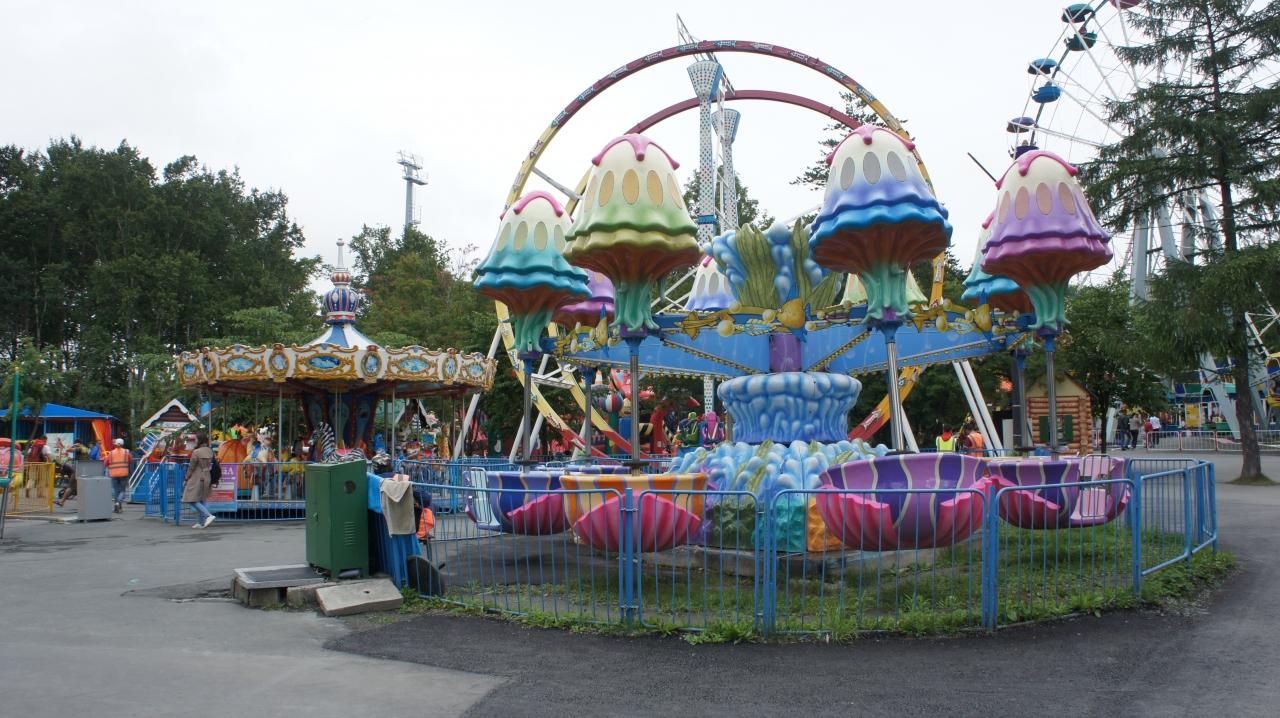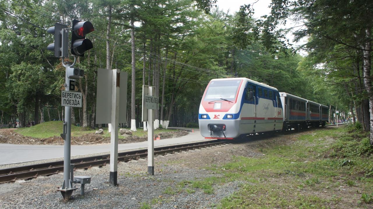 在ユジノサハリンスク日本総領事館の裏手にガガーリン公園があった。かなり広い公園で、遊園地のようになっており多くの子供連れでにぎわっていた。ここにも、運行は全て子供たちが行なっているという子供鉄道が走っていた。ヴェルフネエ湖を1周する約10分ほどのルートである。