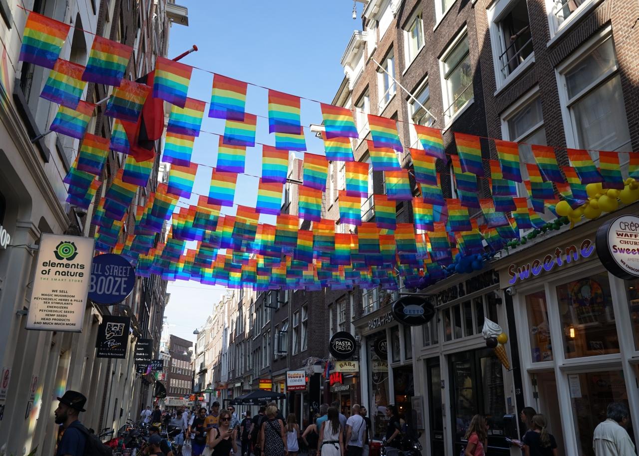 ・・・なんとここアムステルダムで、前日まで世界最大級のLGBTの祭典、ゲイプライド2018(通称ゲイパレード)が開催されていたようです。世界各国からゲイ、レズビアン、 トランスジェンダーなどが集まり大騒ぎのパレードらしく見れなくて残念といえば、残念ですが、本日は落ち着いた雰囲気の街の様子でした
