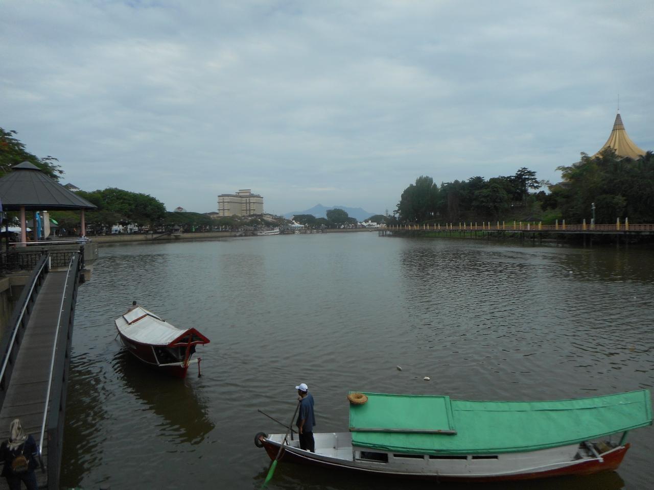 サラワク川沿いに発展した街クチン。街歩きもまずはサラワク川に沿っていこう。川には渡し舟が