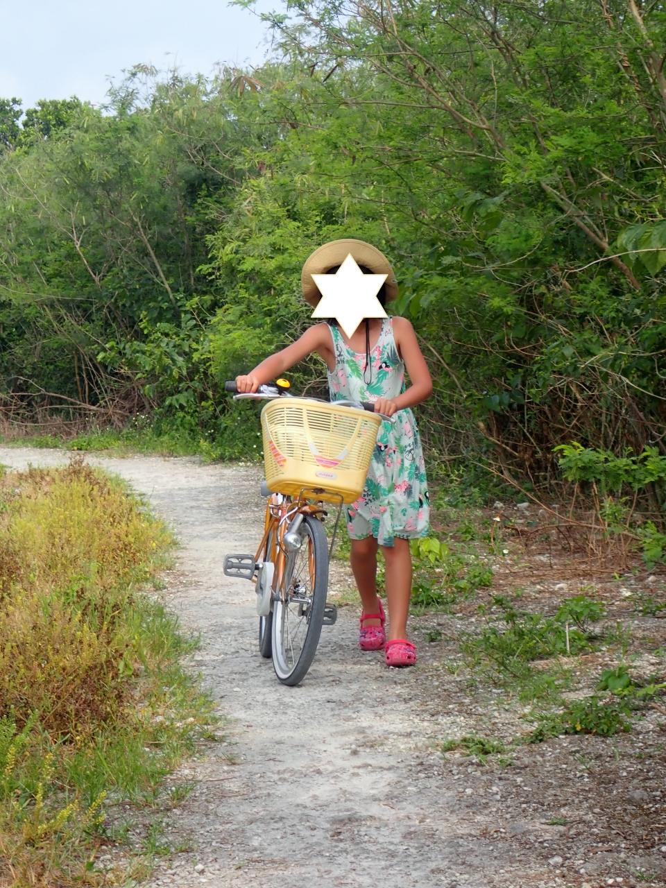 竹富港から今度は星の砂で有名なカイジ浜まで。島の真ん中を突っ切る様な道のりで、途中は未舗装の道路も通ります。砂砂利が漕ぎにくく次女にはハードだったかな。でも頑張りました。