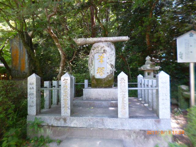ここは「筆塚」と書かれています。太宰府天満宮は学問の神様でもあるので由来しているのでしょうね。筆が石塚の上に祀られています。