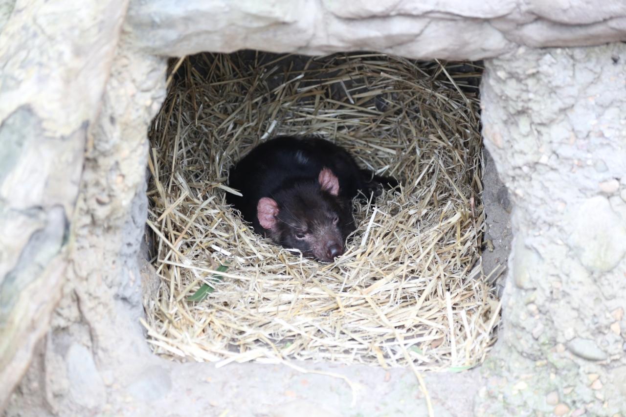 この少し前は走り回っていたのに、我々が見ようとしたら寝に入るタスマニアデビル