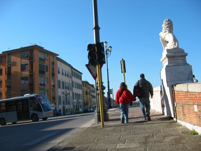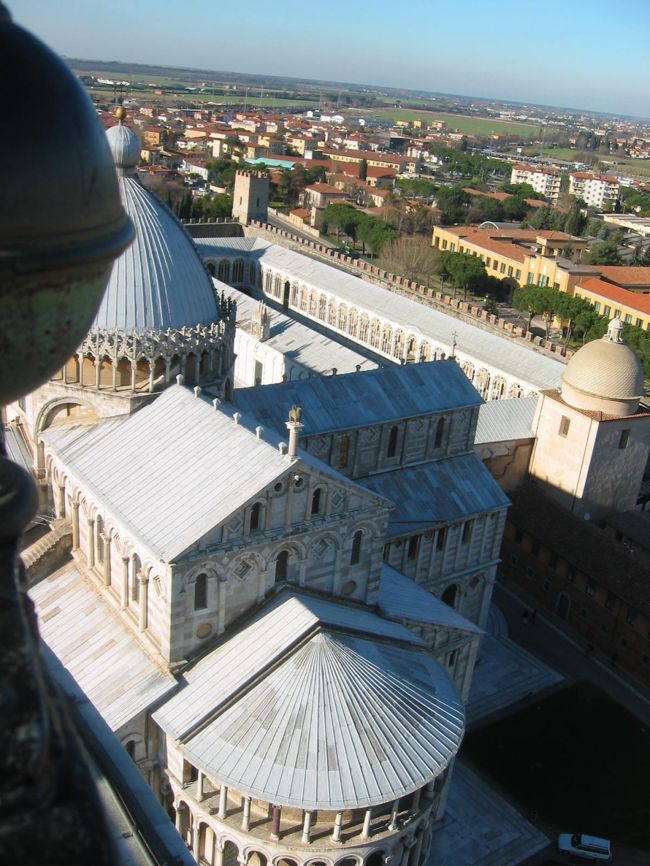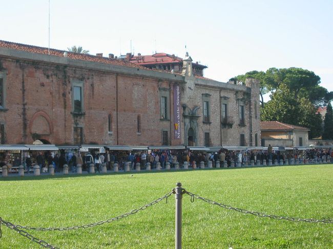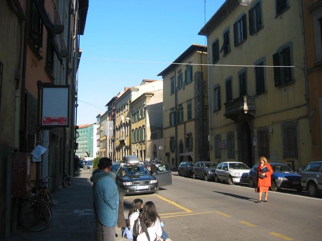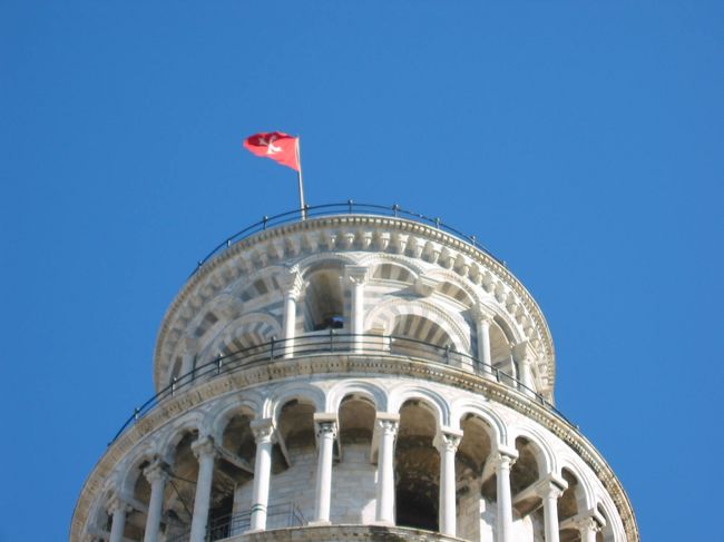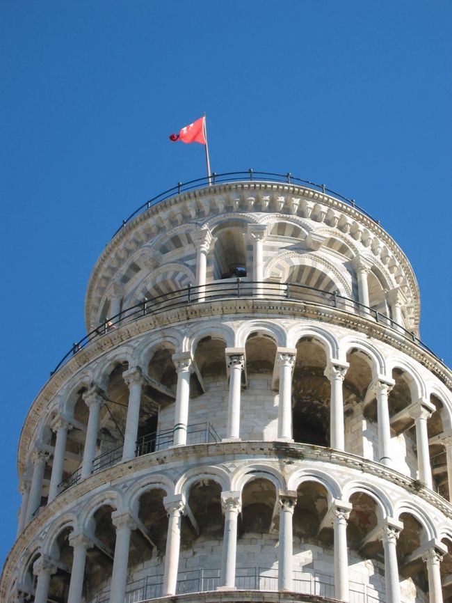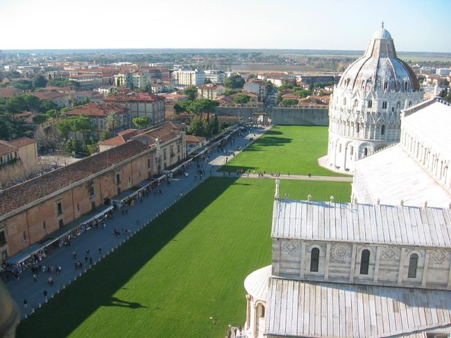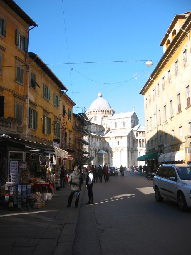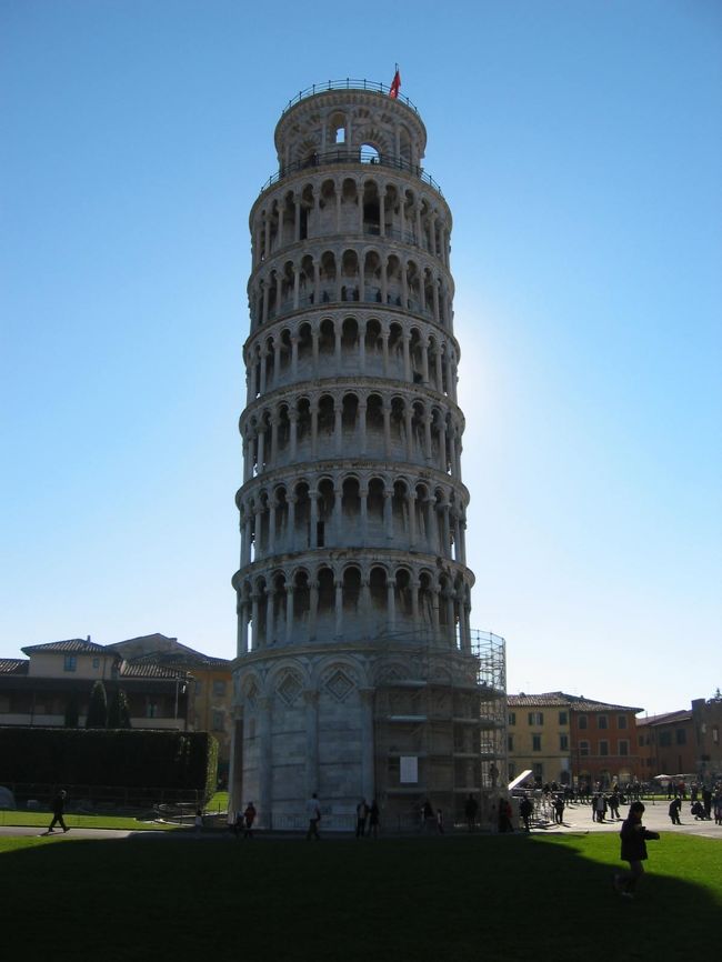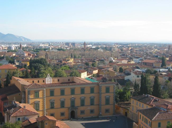 フィレンツエに2泊した次の日は列車でピサに行ってみました。すごく天気が良くミサの斜塔は多くの観光客でにぎわってました。フィレンツェから列車で1時間でピサ中央駅に、その後、1.5K位歩いたところにピサの斜塔はあります。まだ娘が小さく(今は大学生)登れないと言われましたが、年齢は足りていたので何とか許可を得ました。