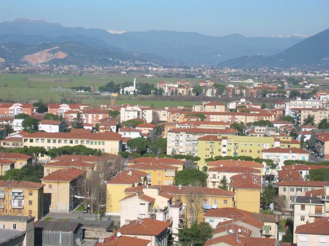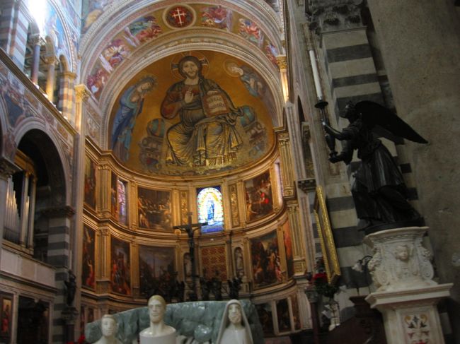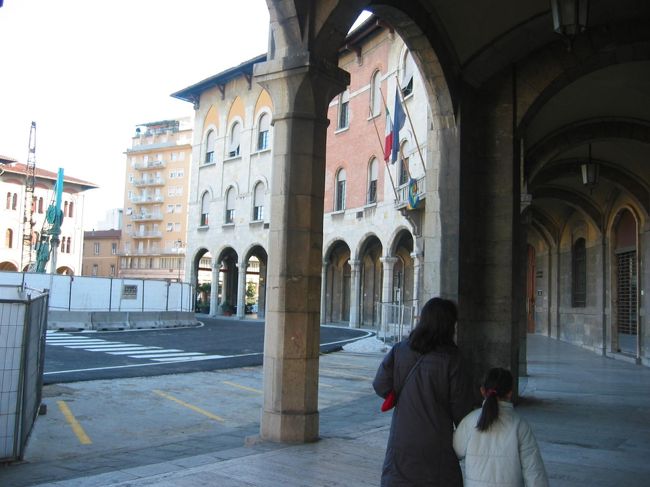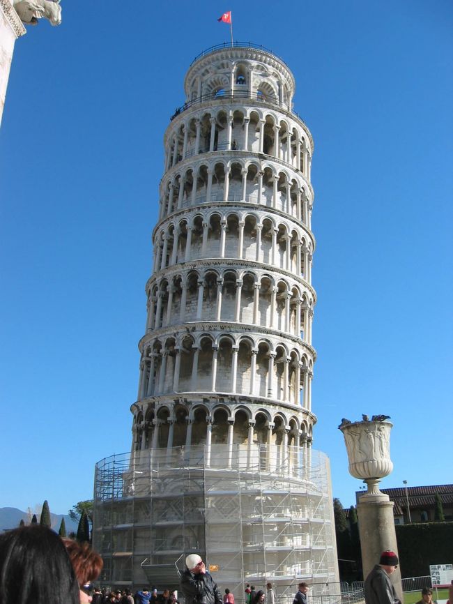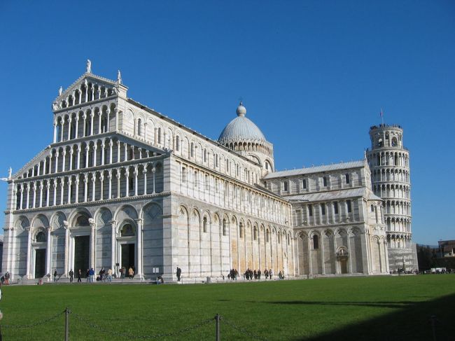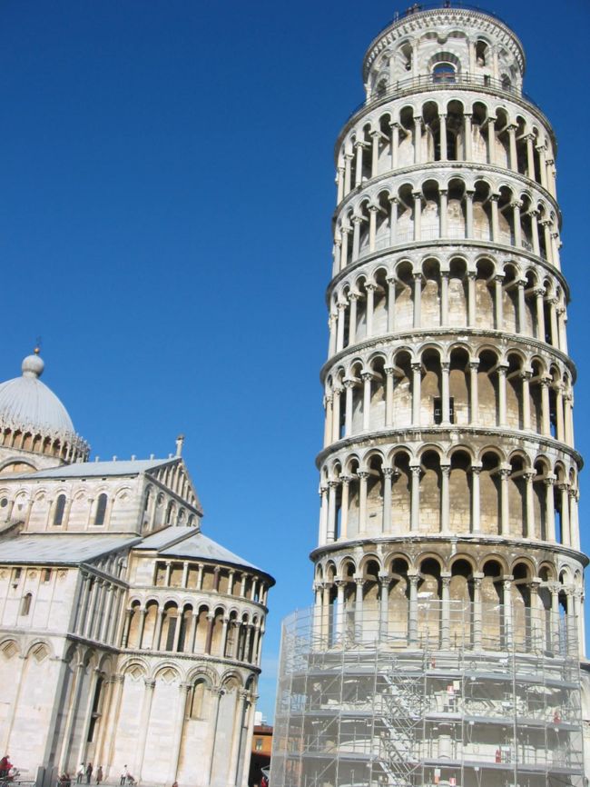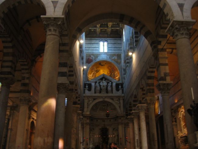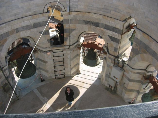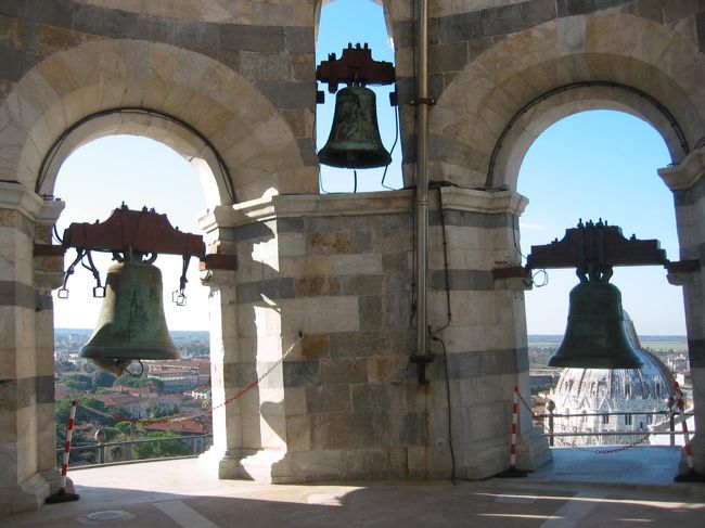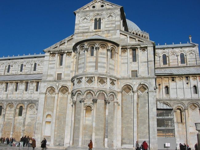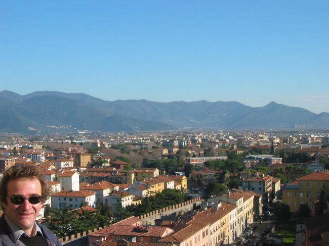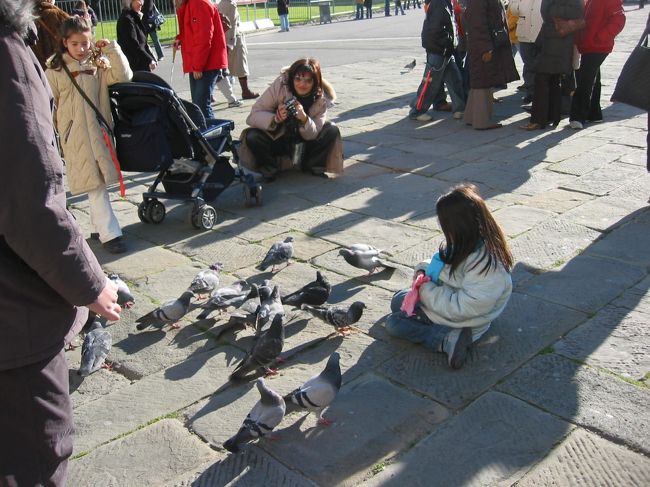 フィレンツエに2泊した次の日は列車でピサに行ってみました。すごく天気が良くミサの斜塔は多くの観光客でにぎわってました。フィレンツェから列車で1時間でピサ中央駅に、その後、1.5K位歩いたところにピサの斜塔はあります。まだ娘が小さく(今は大学生)登れないと言われましたが、年齢は足りていたので何とか許可を得ました。
