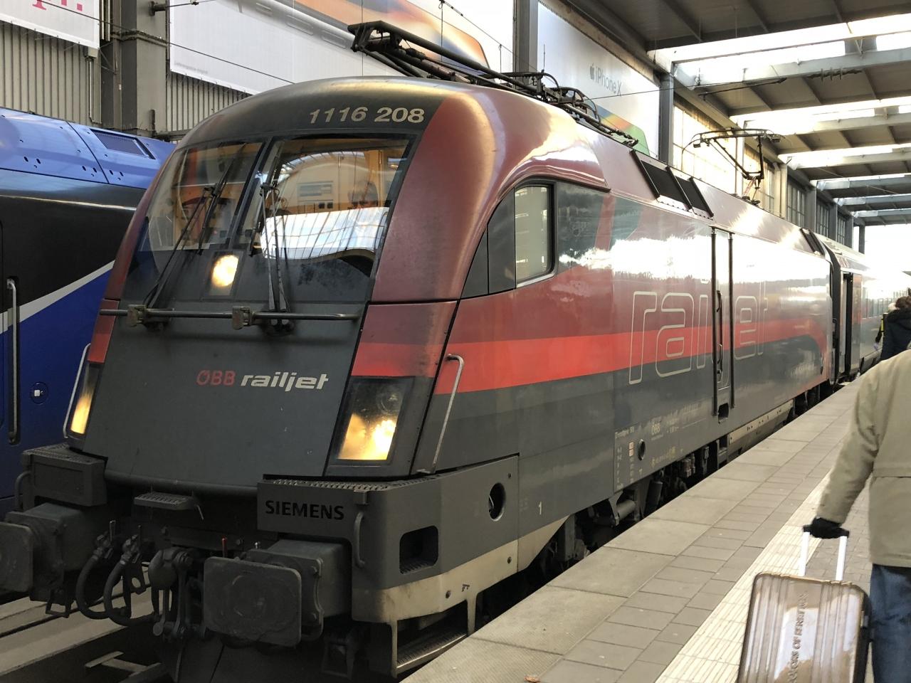今日の移動はオーストリア国鉄(OBB)の誇る高速鉄道 Railjet。