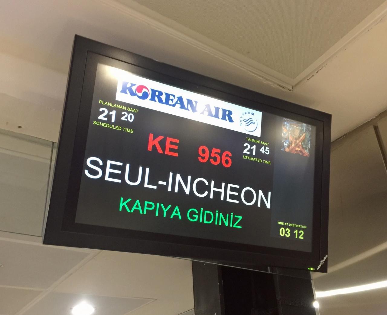 KE956 イスタンブール21:20発 仁川13:25着
