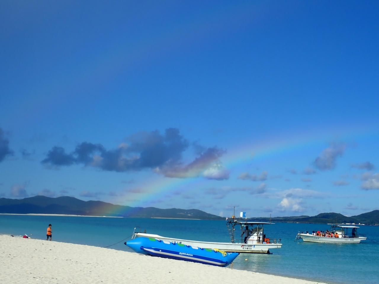 ボートから降りたら、なんと遠くに虹がかかっていました!