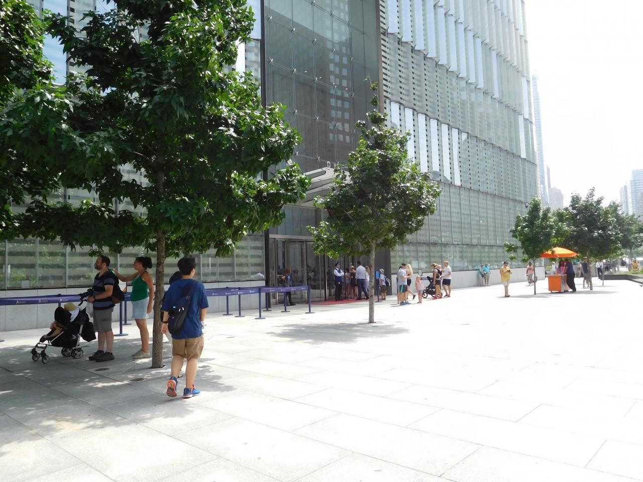 ぐるりとビルを周ってようやく入り口に到着です。予め時間指定の券を直接One World Observatoryから買ってありましたがそれでも並ぶようです。