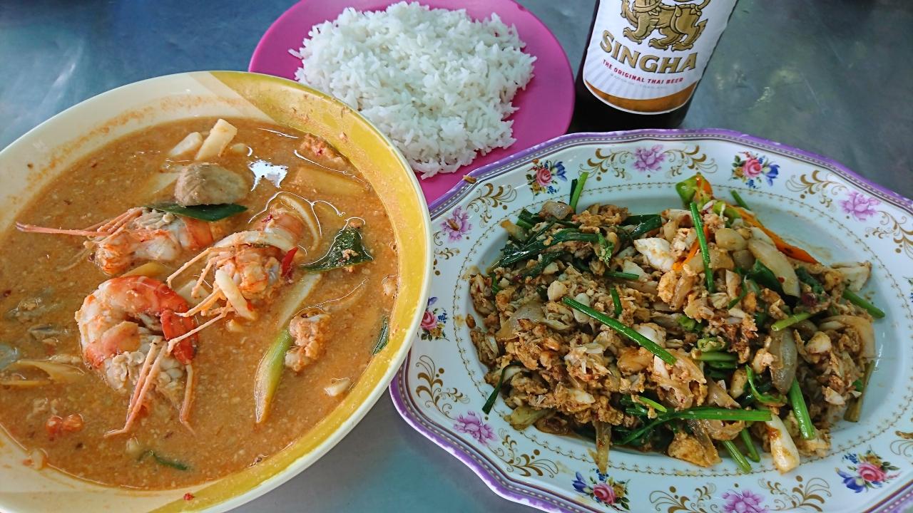 トムヤムクン150b・プーパッポンカリー200b・ライス10b・ビール80b。