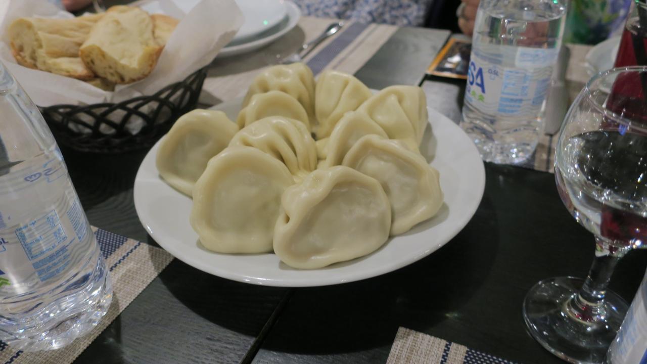 トビシリから北へ160㎞離れたカズベキ山麓へ移動である。19世紀にソ連軍により敷設された軍用道路を一路北に進む。軍用道路といっても、片道1車線で、現在では産業道路といえる。北のロシアから、ジョージアを通って、アルメニアまで、相互に荷物の輸送を行っている。現在は舗装されており、快適なバスの旅である。トビシリを過ぎて、右手に湖が見えてきた。ジンヴァリ貯水池(ダム湖)で、きれいで豊富な水をたたえていた。これはトビシリ市の水源になっている。ジョージアには、25,000の河川があり、これが水力発電として利用され、電力も自給自足されているそうである。川が多いのはコーカサス山脈のおかげとのこと。コーカサス山脈は、1600㎞も続く大山脈である。日本列島を十分包み込む大きさである。しばらく進むとアナヌリ教会の駐車場と露天のお土産屋がたくさん並んでおり、休憩と教会の見学である。坂の下にある城壁の中には二つの教会があり、17世紀後半に建てられたとのこと。良くもこのような地形のところに、教会を建てたものと感心させられた。石造りは、その威容を示すに十分な貫禄である。内部を見学し、周囲を回って、元に戻る。途中に、羊の毛皮のベストや帽子を展示して、昔の面影をしのぶ簡単な貸衣装屋があり、写真撮影2ラリであったのでチャレンジした。現在ではこのような衣装は使われていないとのこと。見世物である。戦闘用の刀も貸してくれ、それなりの格好となった。写真撮影である。仲間への見世物なり。羊の皮の帽子は、白、黒、薄茶と羊の毛をそのまま使っており、孫の学芸会用の帽子になるのではないかと、購入。(35ラリ)さらに進んでいくと、トラックの一団が、長い行列を作って進行方向に見えた。これを待つのかと思ったら、これらは国境越えの手続きのため待たされているとのこと。検問である。積み荷の中身など、駐車場で行われるが、狭いので待たされているとのこと。通常1日かかるそうだ。さらに上りグダウリ近くで、スーパーでのトイレ休憩。この地区唯一のスーパーであるので大変にぎわっていた。ここは、ジョージアのスキーリゾートの一つで、ホテル、ペンションなどが山の斜面に立っていた。さらに進むと軍用道路の最高地点(高度2395m)に、ジュヴァリ十字架峠が立っている。ここで見学。その横には、この道路建設で亡くなったドイツ人のお墓(十字架)が建てられていた。途中牛や、羊が放牧されており、自然の中ではぐくまれている。さらに進みカズベキ山麓に到着し、小さな村落の民宿で、食事。ここでも大変な量の食事で、残すのに気が引けたが、満腹で断念。でもおいしかった。ここで山麓へ出発するために、四輪駆動車4台に分乗して出発。4駆に乗り換えるだけあり、道路から山のほうに入るや否や、アップ、ダウン揺れ動き、約30分で、到着。現在新しい道を作り始めているので、これが完成するともっと楽になりそう。頂上には、ツミンダ・サバメ教会がある。本当に頂上にある教会である。気温も13℃ぐらいで、やはり高山の気候である。帰りは、同じ道を下り、途中でバスに乗り換え、下り始めたら、羊の大群が、道路をふさぎ一時停車。のどかな風景である。さらに下り、ソビエット―グルジア友好の壁が色彩豊かなモザイク絵でそびえていた。今は、展望台としての機能が中心とのこと。夜はトビシリのレストランで食べ、ホテルへ帰着(写真は、ジュヴァリ十字架峠にて)