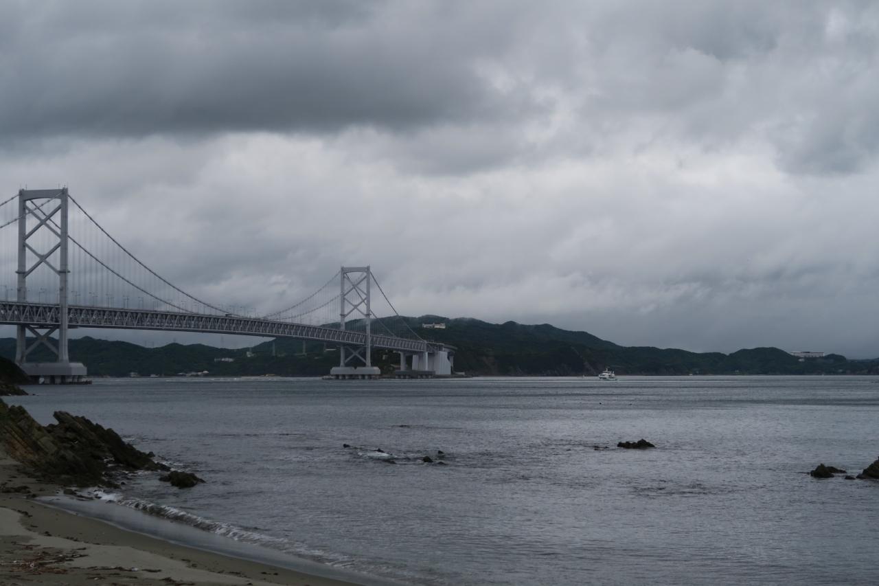 翌朝も大鳴門橋を見ながらホテル前の浜辺をお散歩