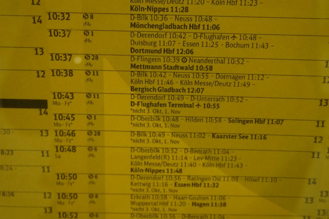 ドイツ鉄道の時刻表は各駅の名前と到着時間が全部書いてあるので見方さえ分かれば結構便利。