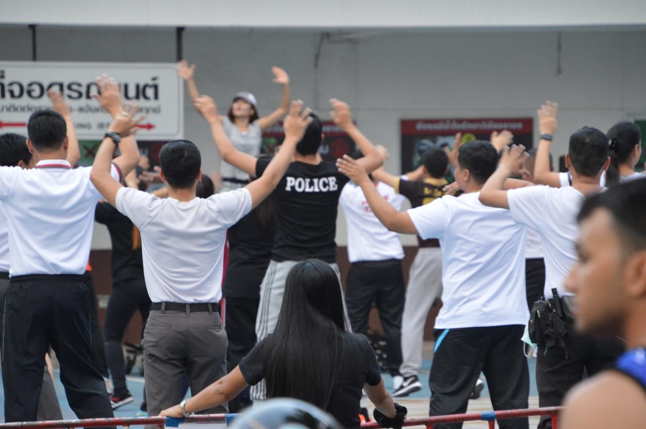 パタヤ中心部に戻って来ました。ちょうど、パタヤ警察署で体操していました。