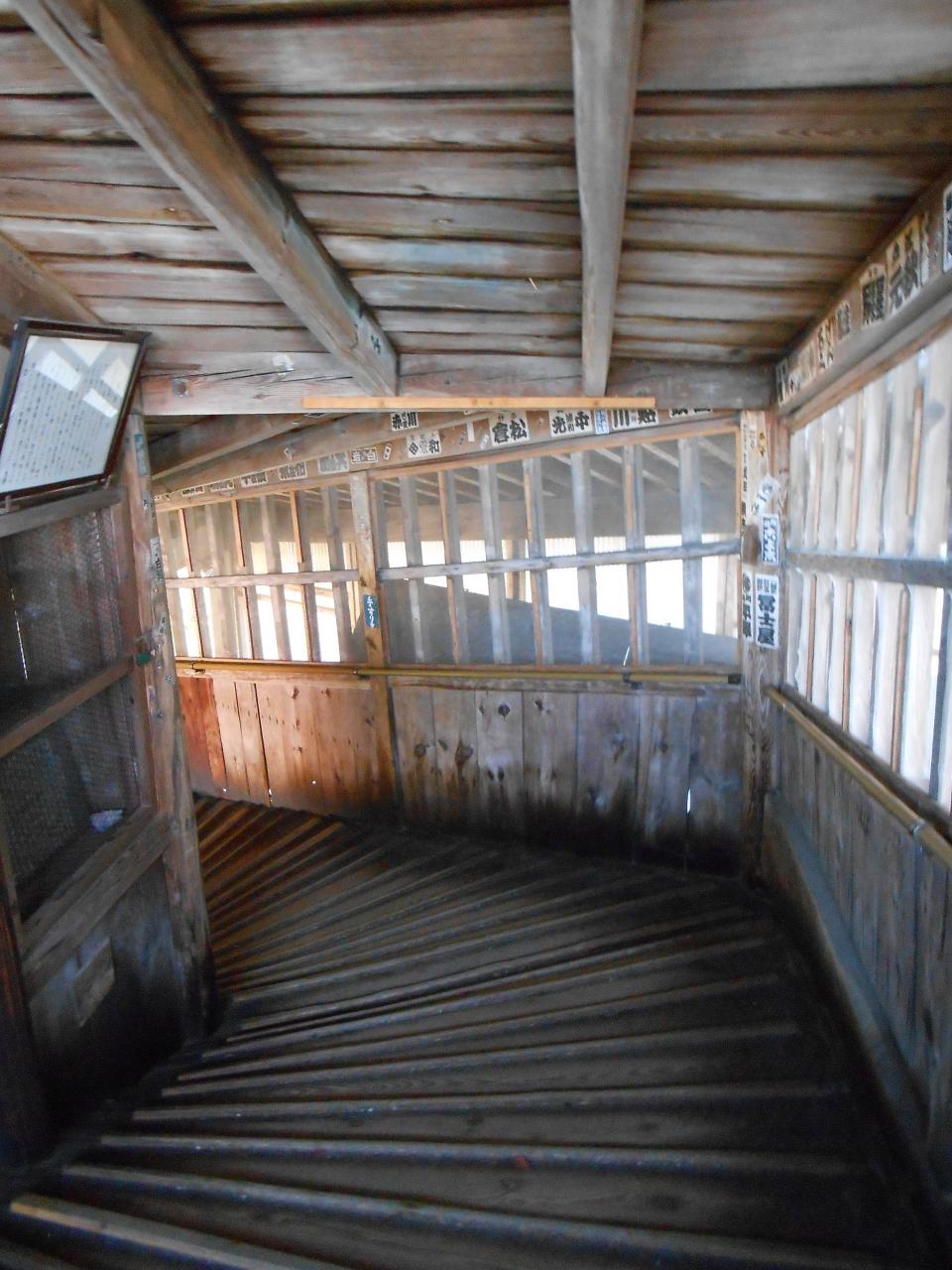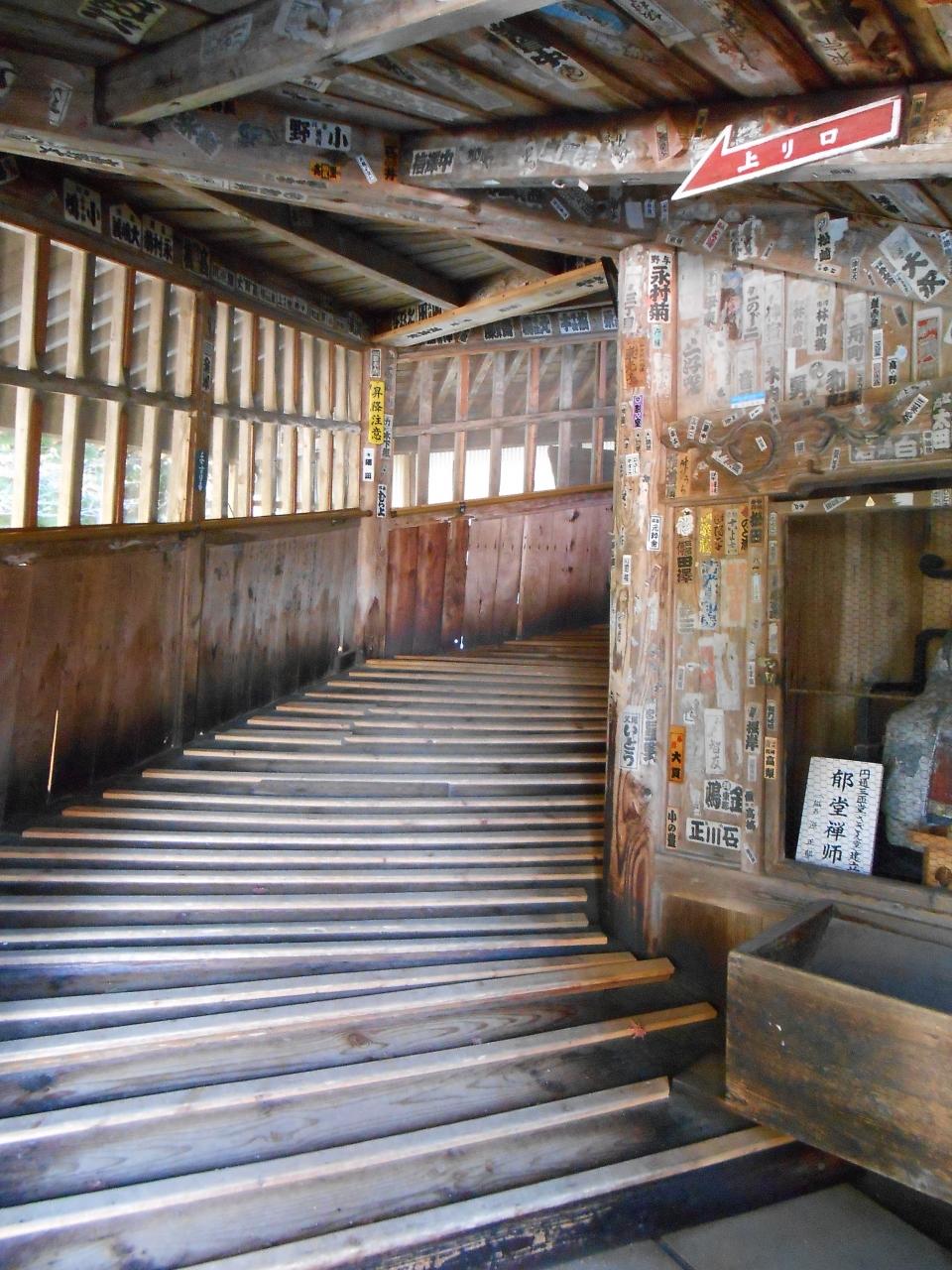木製の階段?坂?を上がって行きます。中は天井が低く小さめなので大柄な夫は背中を丸めて頭をぶつけないように歩くのが辛かったようです。