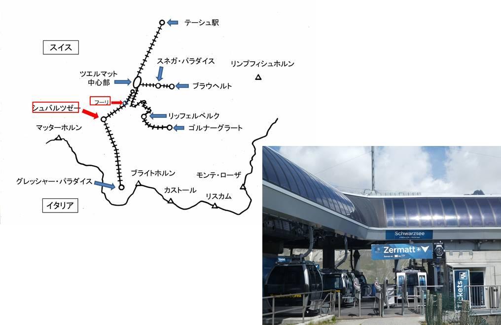 • ②ブラウヘルトからスネガまで <br /><br />ステリ湖、グリンジ湖、ライ湖の三湖を巡ります。<br />ツェルマットのチケット売り場からケーブルカー乗り場までの地下道。何となくおしゃれ。
