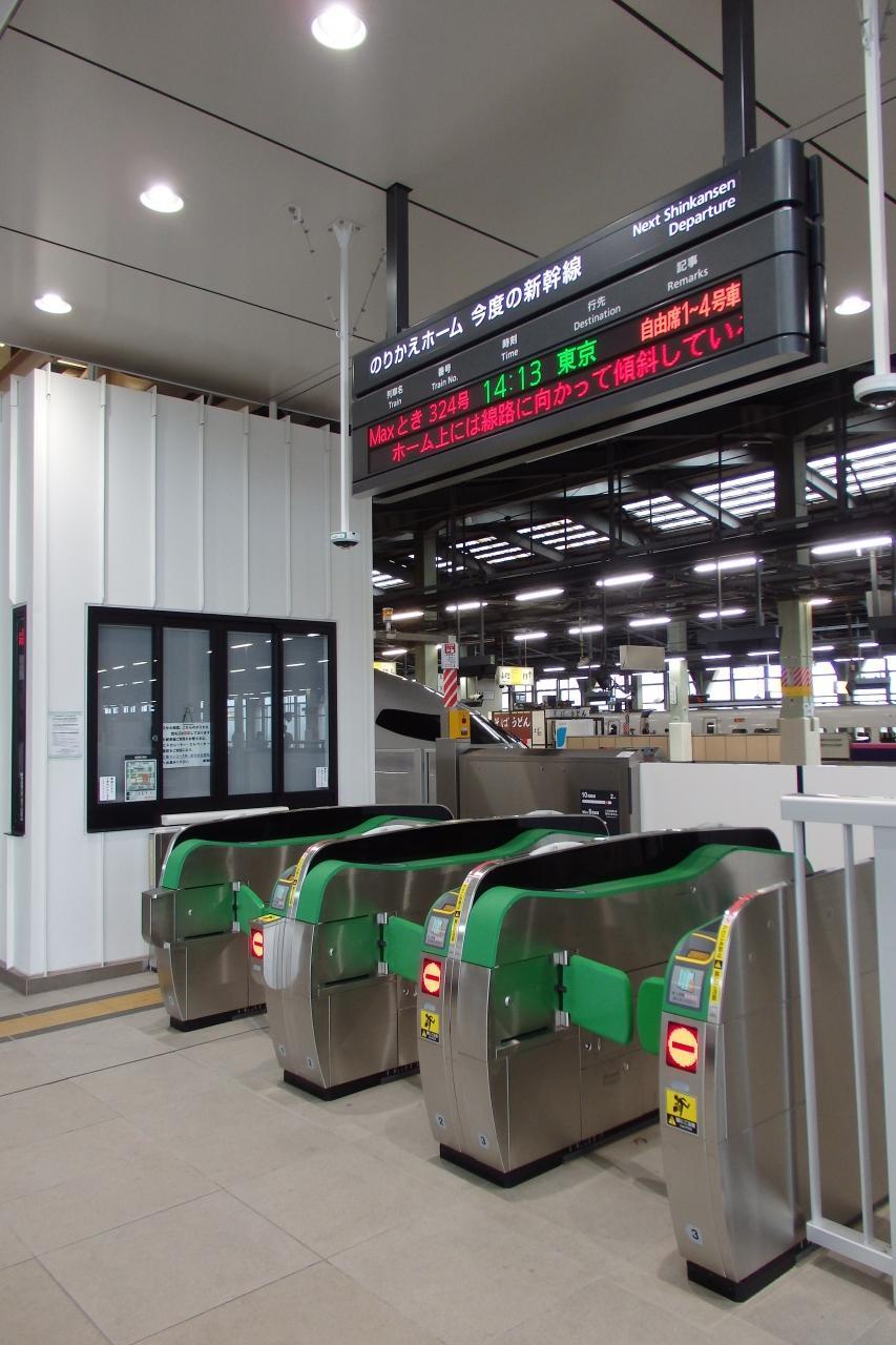 そしてこちらが、「とき」⇔「いなほ」乗り換え利便性向上のため登場した、新幹線、在来線ホーム上乗り換え改札。今年4/15にできたばかりですね。