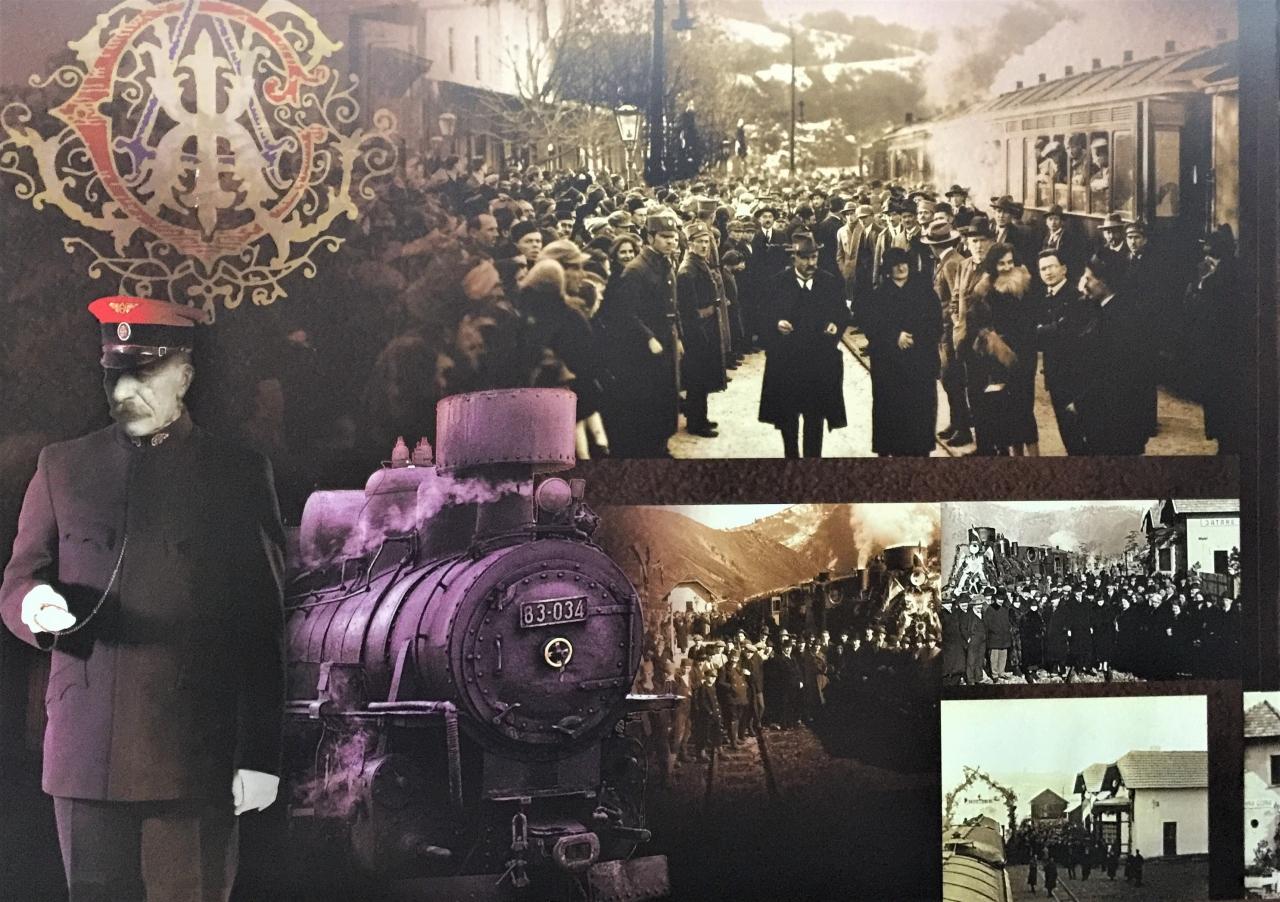 その壁面には「シャルガンスカ・オスミツァ」の工事中や活況当時の写真が展示されている。