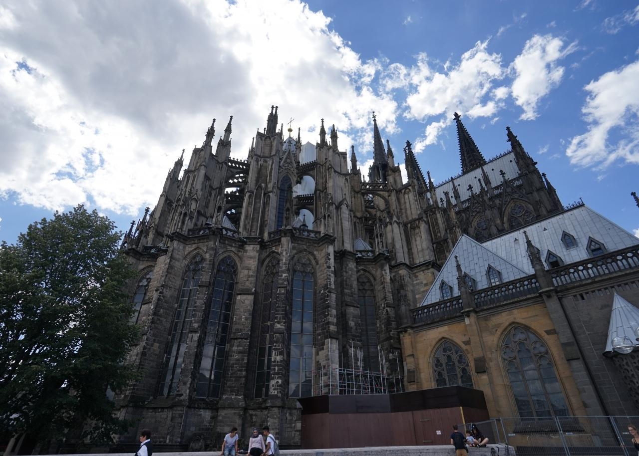1時間半ほどヴァラフ・リヒャルツ美術館を堪能し、ケルン大聖堂に戻ってきました。ゴシック建築としては世界最大の大聖堂の外観を時計回りに見ていきます。