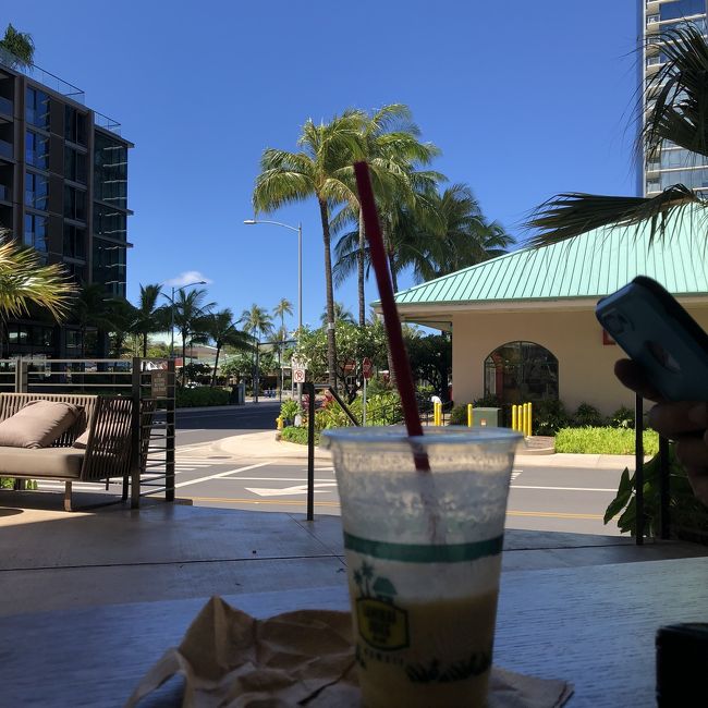 なので、買い物はせず、ワイキキでは飲めなくなってしまったラニカイジュースを外のテーブルでグビっと