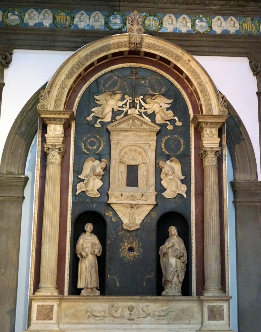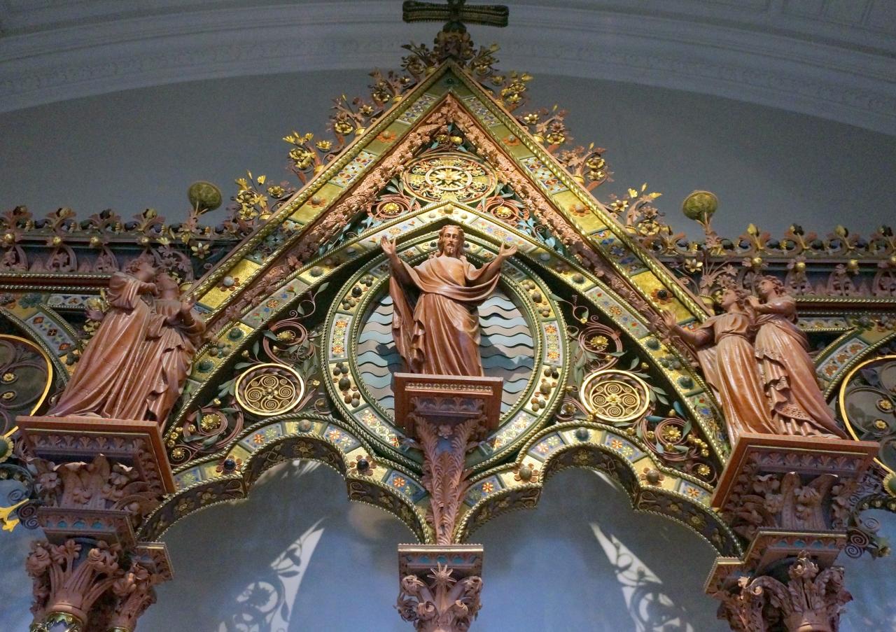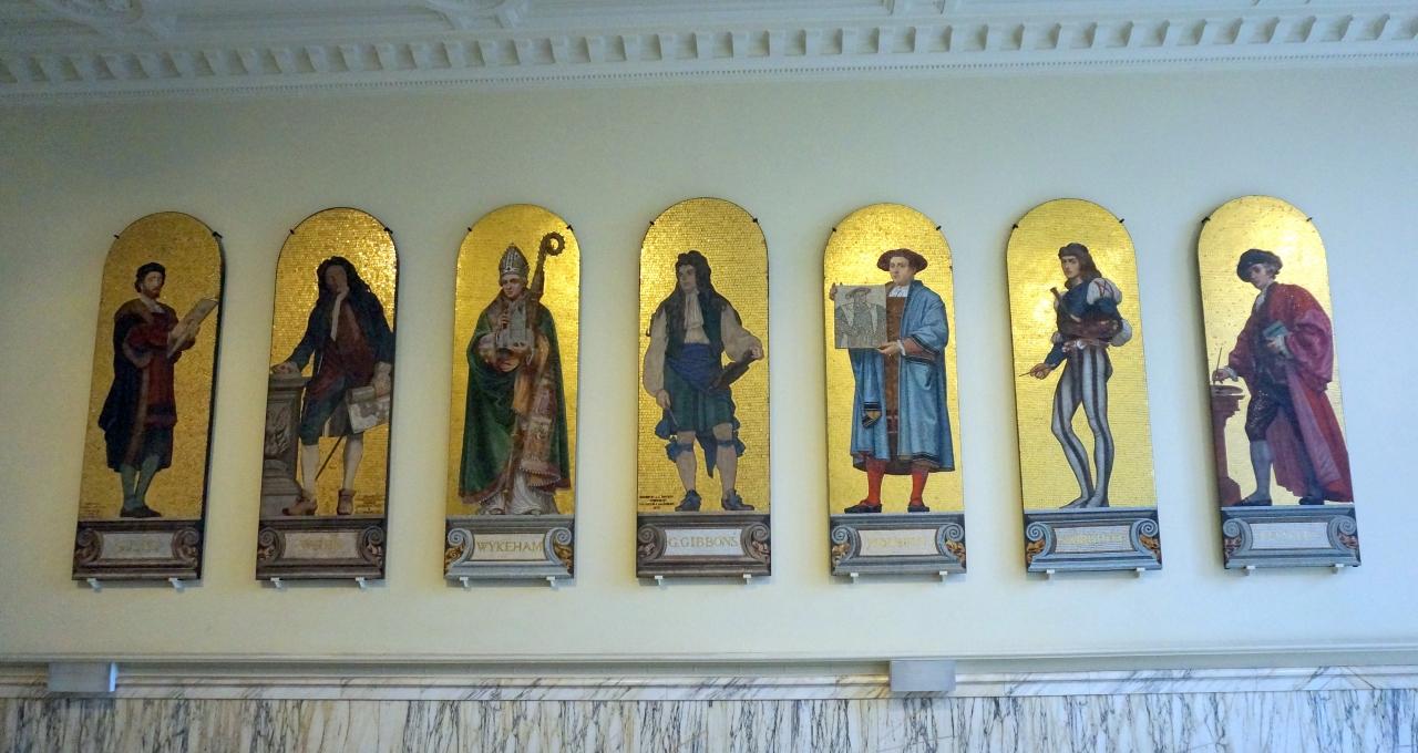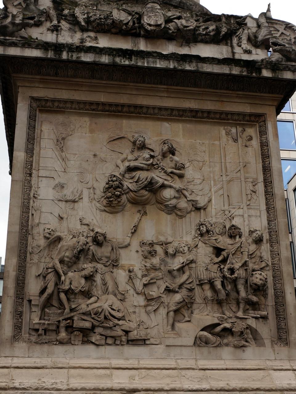 台座の浮彫は復興に尽力したチャールス二世の事績を映しています。