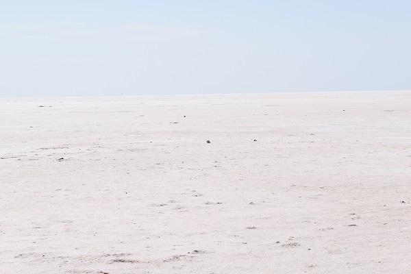 次の目的地はトゥズ(塩)湖、ここでトルコの半分近くの塩を作っているそうです。時期がよければウユニ塩湖のような鏡状になるとのことですが、湖の表面にほとんど水がなく、塩の上を歩いていました。大きな湖なのでとにかく広かった。