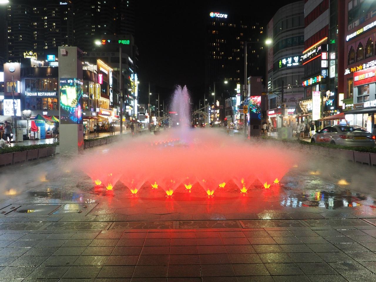 駅からのメインの通りでは噴水ショーが始まりました。