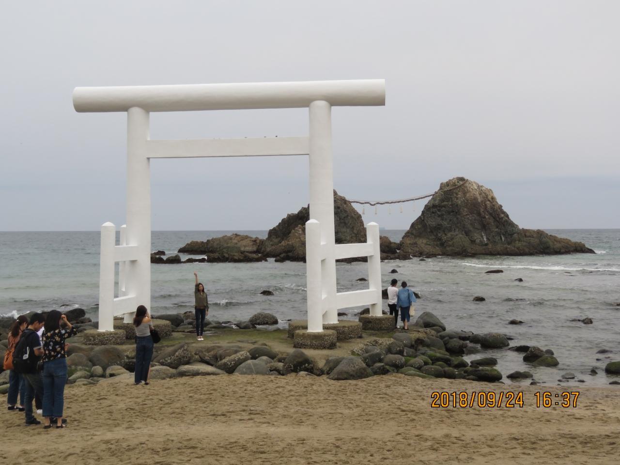 9月24日、午後3時半頃に桜井二見ヶ浦夫婦岩に到着しました。 ここは日本の夕陽百選として素晴らしい風景が見られました。白い鳥居と大きな夫婦岩があり、夕陽が見られれば素晴らしいと思われました。