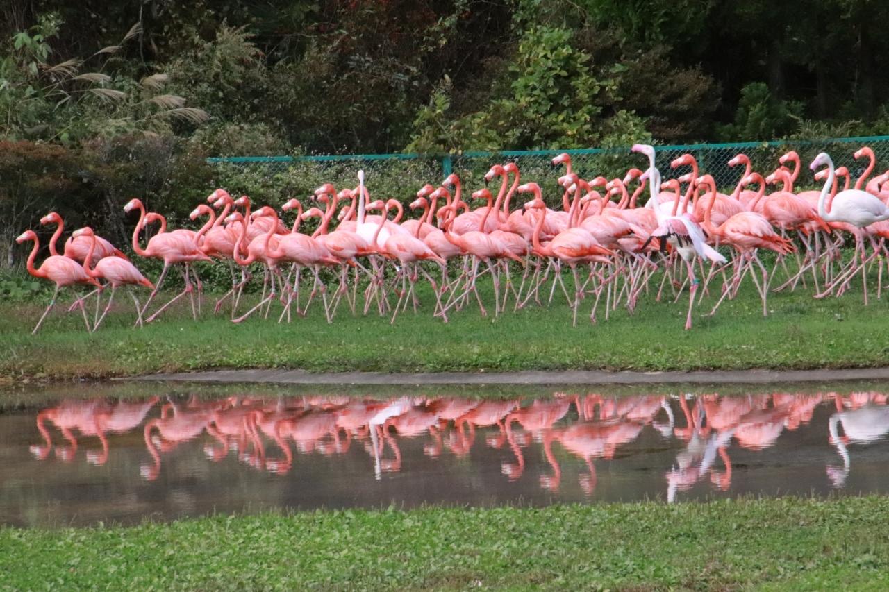 集団で行動し、固まりやすいフラミンゴの習性を利用したものですが、最初の2つのショーに比べると人の手による演出が少なく、大人向けのショーともいえます。時間も2つのショーより短かったです。