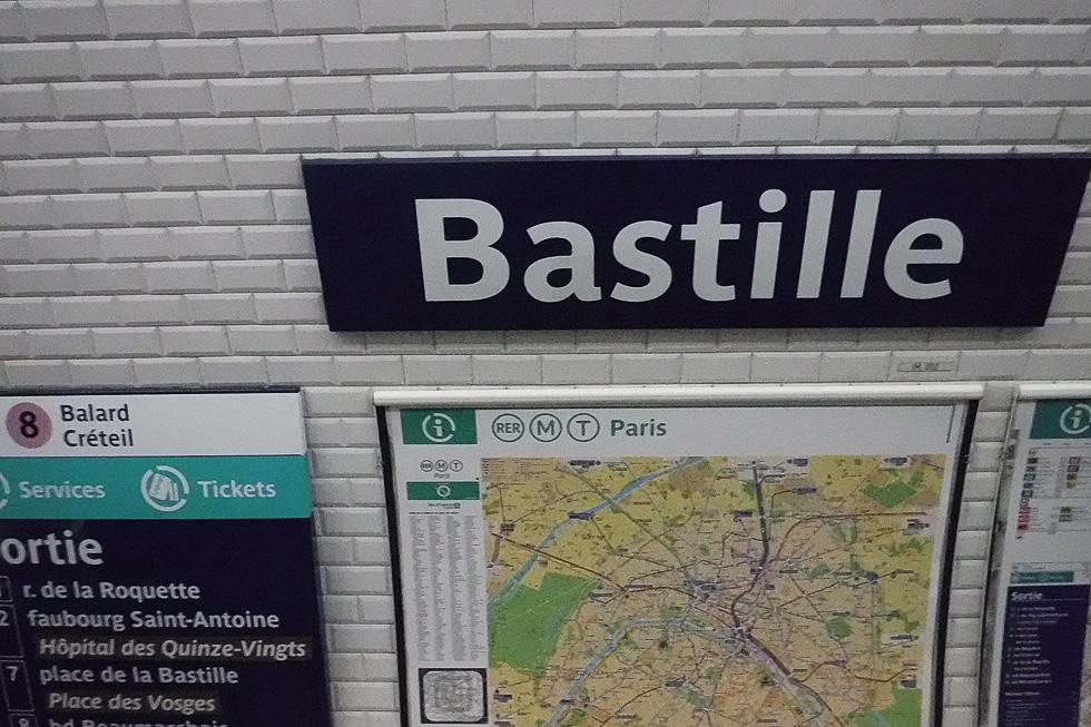 一駅で乗り換えのバスティーユ駅。