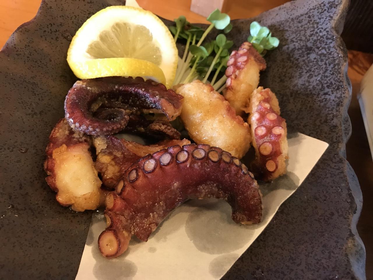 好物のたこの唐揚げなんぞをつまみながらゆったり待ちます。