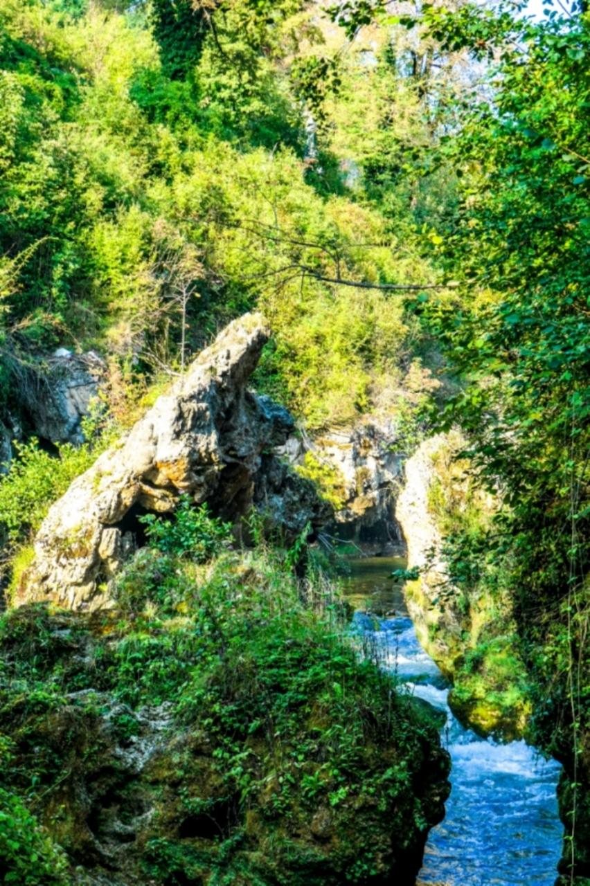 この家なんて真下から滝が流れています!