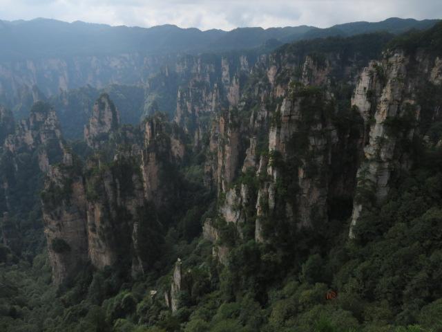 天子山自然保護区にある賀龍公園、御筆峰、仙女散花、天子閣など見ながら歩きました、2009年公開の映画アバターの舞台なった場所のようです、多くの奇岩・岩の柱などスケールの大きい景色をたっぷり見物、見た後は天子山ロープウェイを利用して下山しました、ロープウェイの車内から山々を最初眺めましたが途中から霧で見ることが出来ませんでした、下車後は武陵源入口の門を歩いて駐車場に戻り、宿泊するホテル京武プルマンに向かいました。