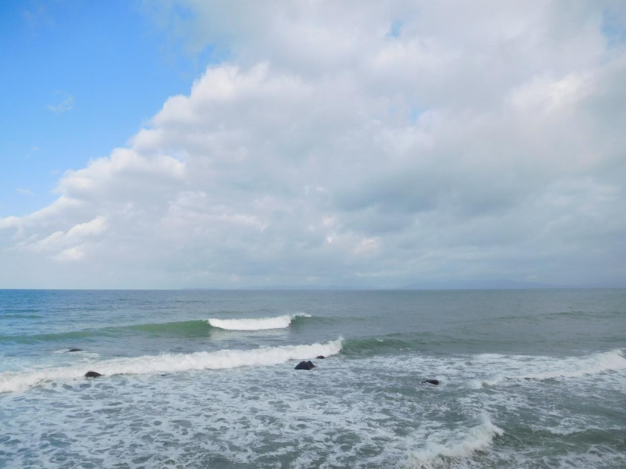 昨日は天気が悪く、サンセット後で暗かったですが、今日は明るくて海岸線も昨日よりも綺麗に見れますね。