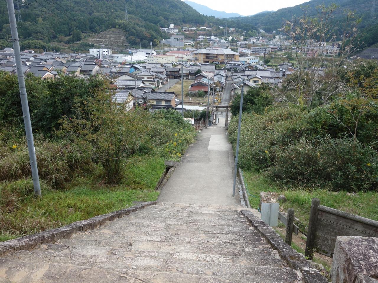 竹田城へ登る道は4ルートあります。(1)駅裏登山道,(2)表米登山道,(3)南登山道,(4)西登山道(山城の里からの舗装道路)です。結果的に一番きつい,表米登山道を下山しました。ああ,しんどかった。