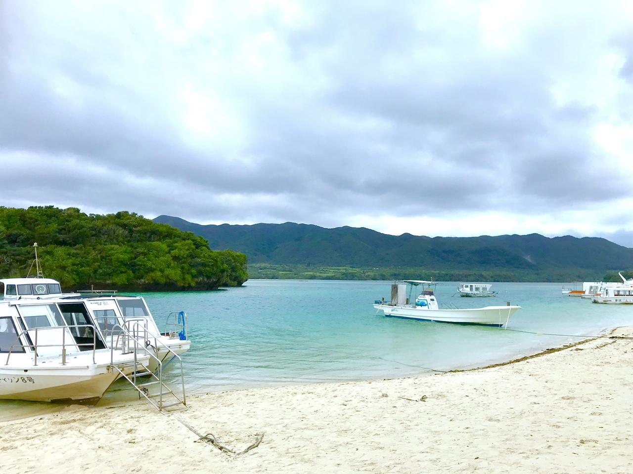 川平湾に着いた頃には、雨は止んでたけれどドンヨリ曇り空。