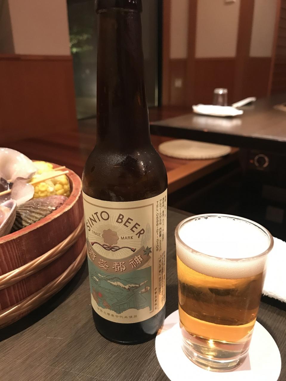 次はこちらの伊勢角屋麦酒でカキフライ串を食べます。