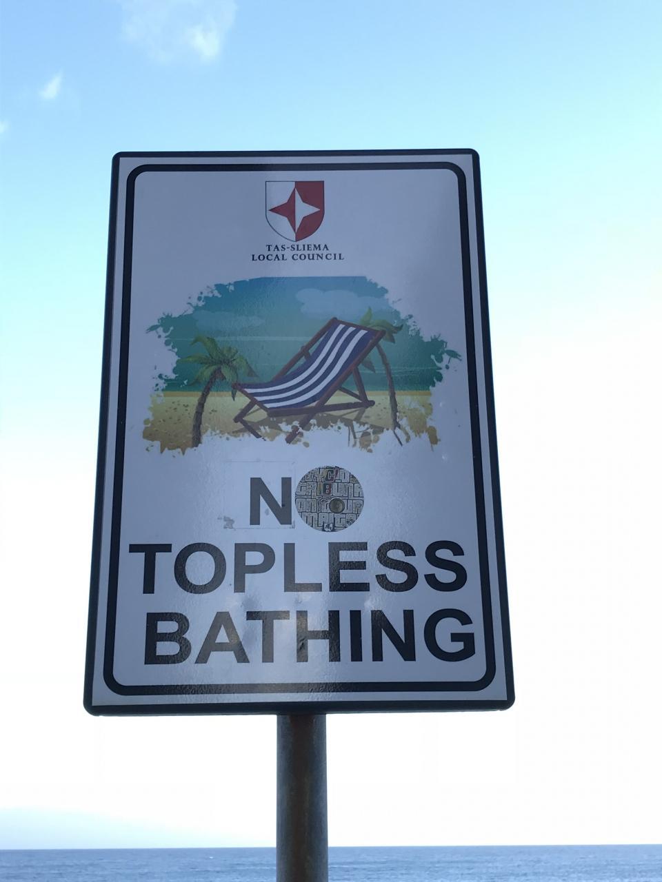 ホテル前から続くスリーマ海岸では、ヨーロッパの観光客が多い為か、散歩の途中で『トップレス禁止』の看板がビーチ入口に掲示されているのを見ました。別に無理に禁止看板を立てなくてもいいのでは?!(^◇^) -