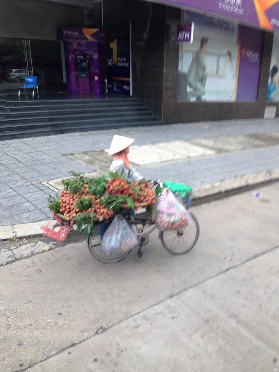 ホテルの前から自転車で花売りの女性の出勤です。