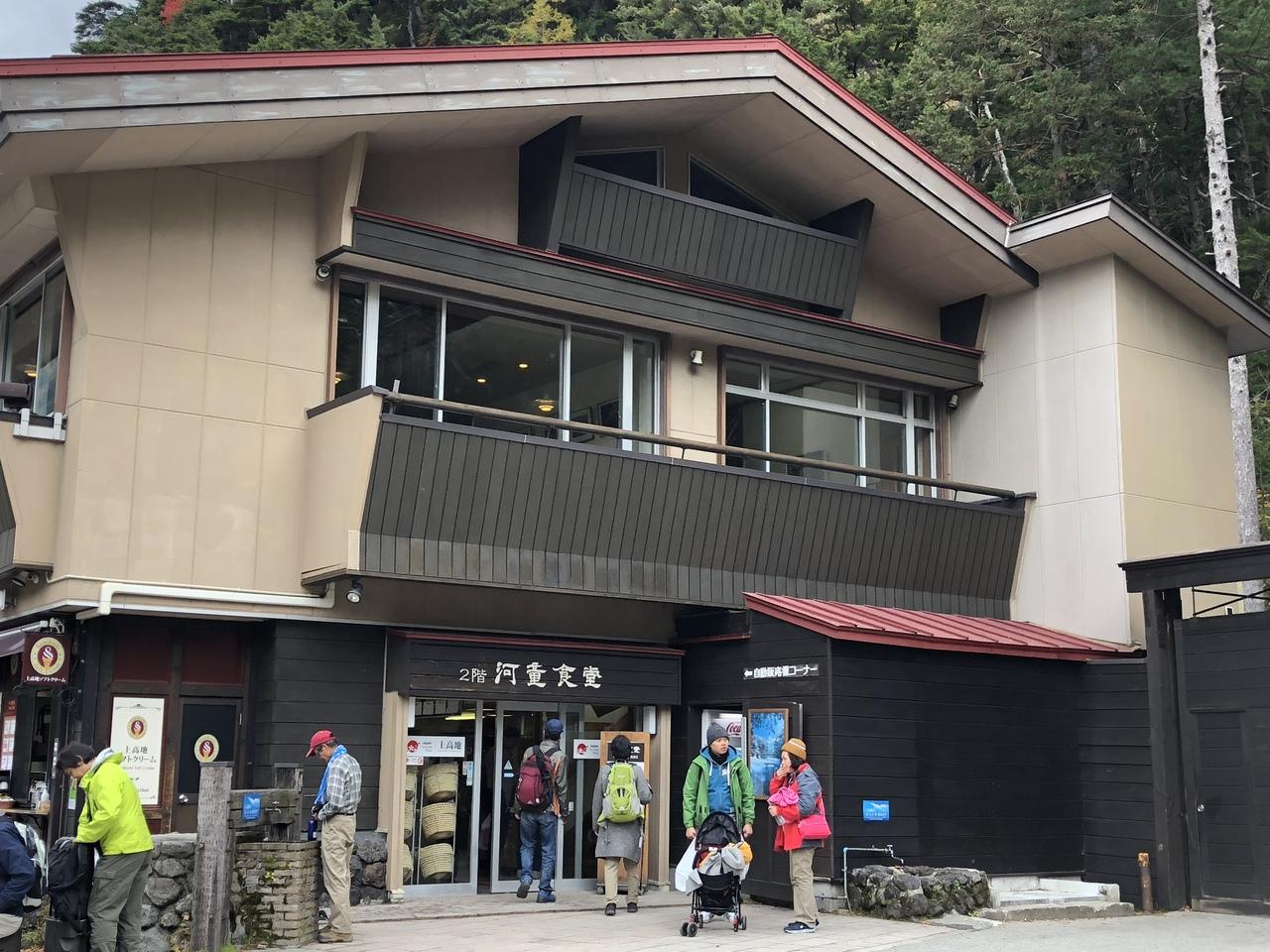 大正池バス停から70分ほど歩いて河童橋まで辿り着きました。
